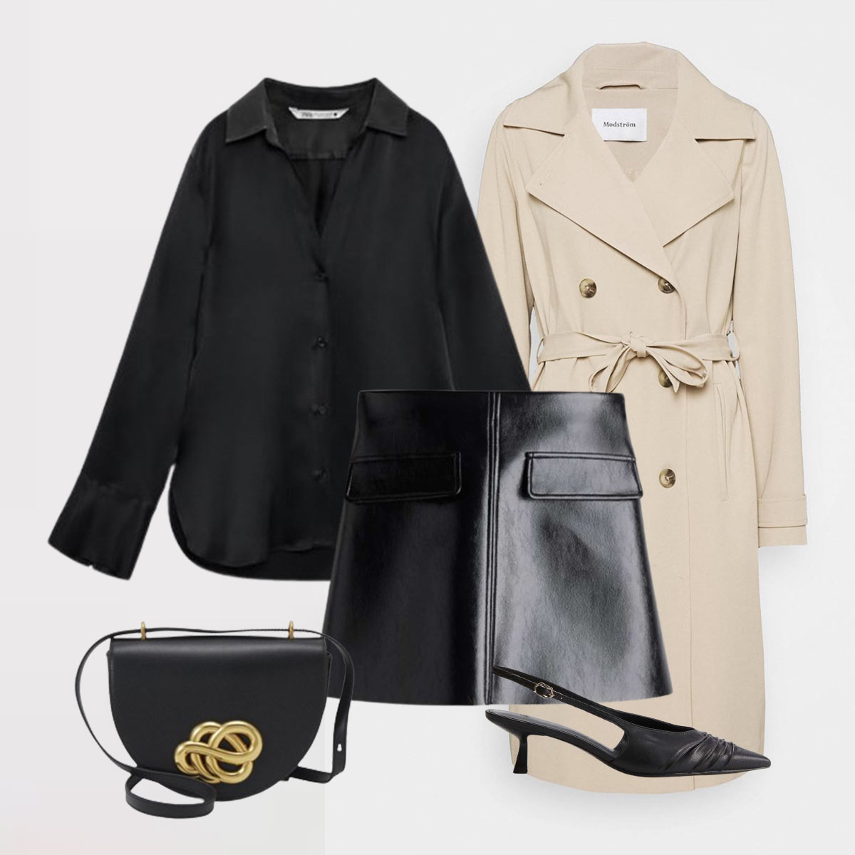 Bluse Zara, Veske Malene Birger , Skjørt HM, Kåpe Modström, pumps fra HM