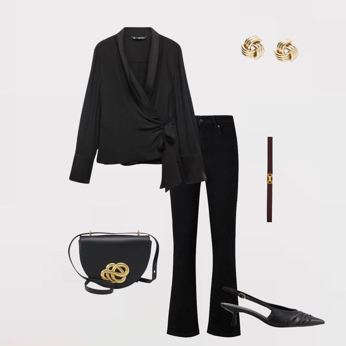 Bluse fra Mango, Veske Malene Birger , Bukse fra Loise, Pumps fra HM, Belte fra HM, øredobber fra Meshki