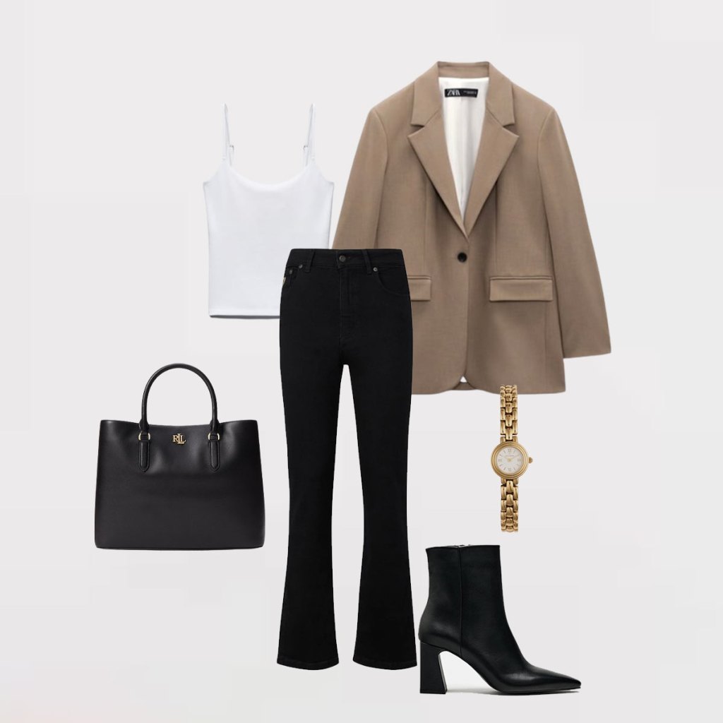 Blazer Zara, Topp Zara, Bukse Loise, Veske Lauren Ralph Lauren, Sko zara