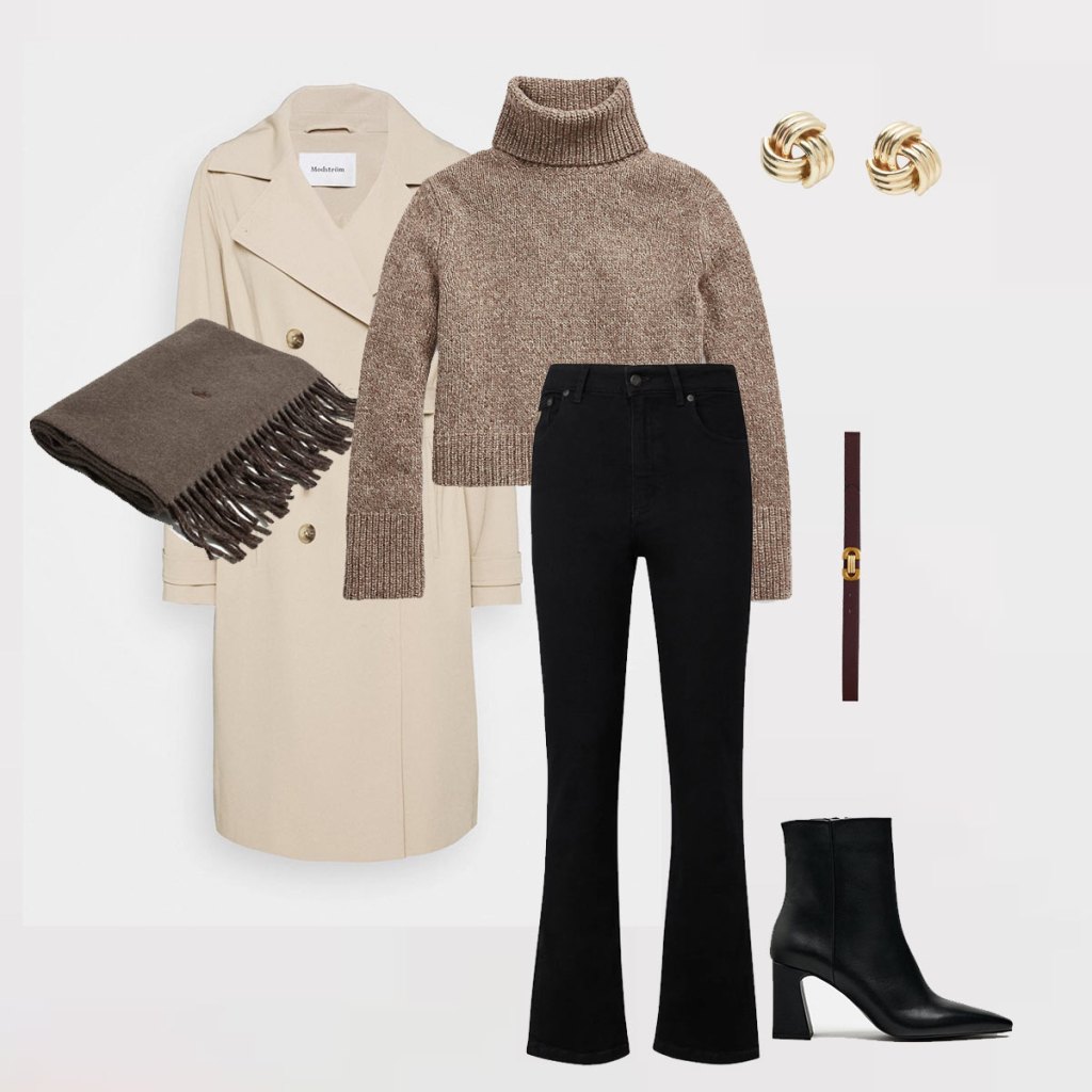 Kåpe Modström, Genser fra Ralph Laurent, Skjerf fra Ralph Laurent, Bukse Loise, Sko fra Zara, veske fra Ralph Laurent,