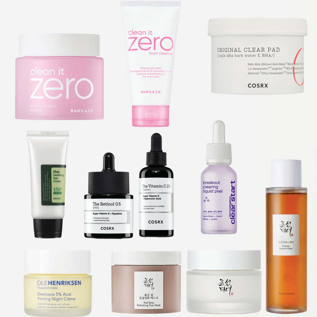 Cleansing Balm, Foam Cleanser, Retinol 0,5% , C-vitamin serum 23%, Acne Master Patches, Ginseng Essence Water/Toner, Solkrem SPF50+, ansiktskrem, Clear Pad/ eksfoliering, Nattkrem, Pore mask