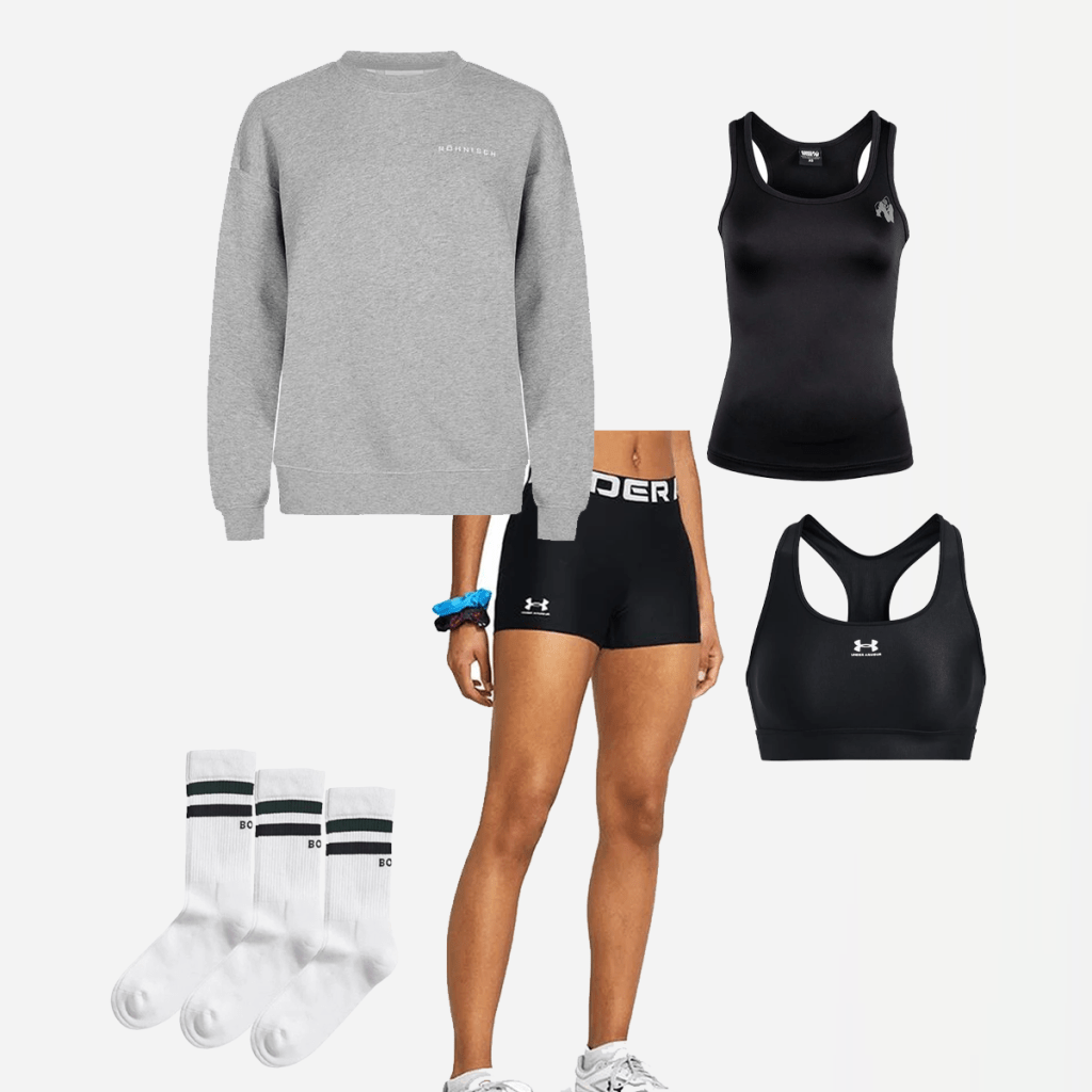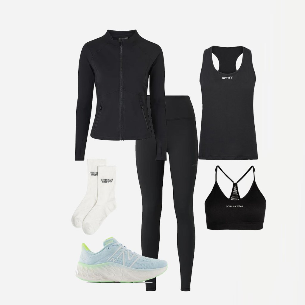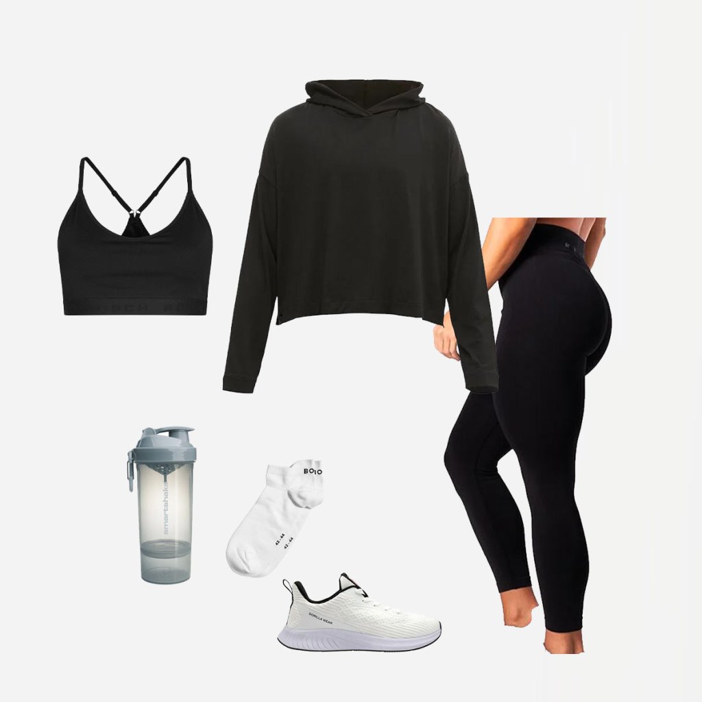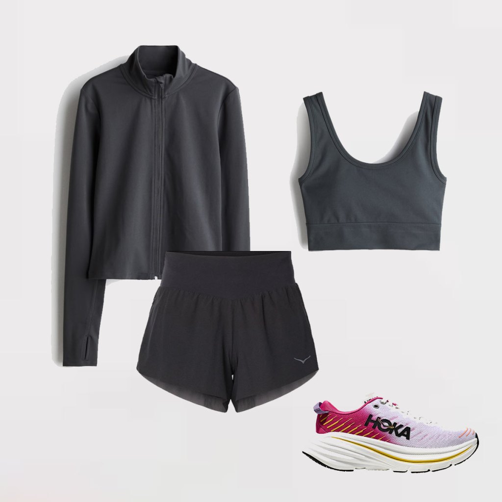 Shorts fra Hooka, sko fra Hooka. Trenings-BH fra HM, treningsjakke fra HM